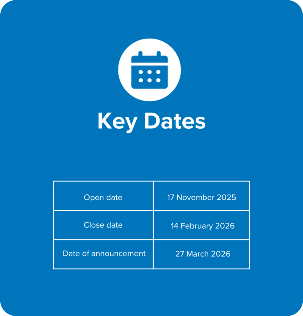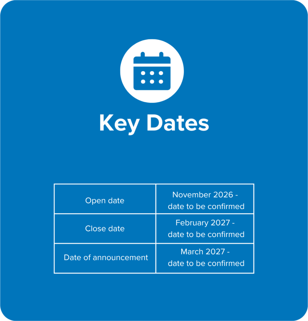 - Your project commences after 27 March 2026 and before 30 November 2026.
